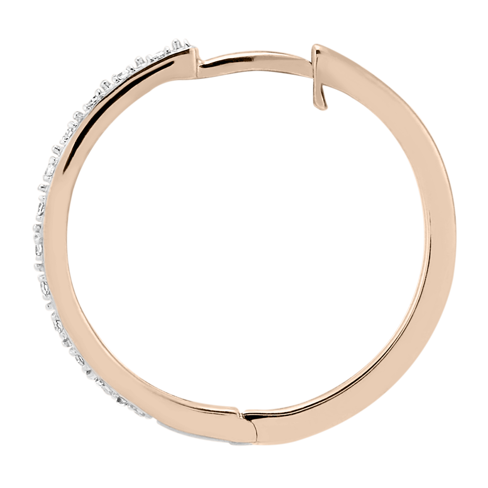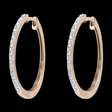 Een paar half-gemonteerde rosegouden hoepeloorbellen voor een vleugje sprankeling en moderniteit. 18mm diameter ring