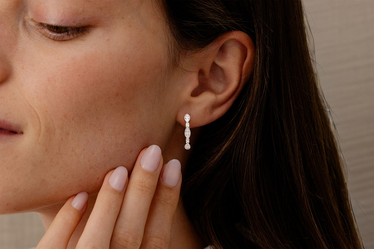 MEER INFORMATIEEen cluster is een samenstelling van kleine diamanten die samengebracht worden om het effect van een grotere steen te creëren, met vermenigvuldigde fonkeling en een uitstekende prijs-kwaliteitverhouding.