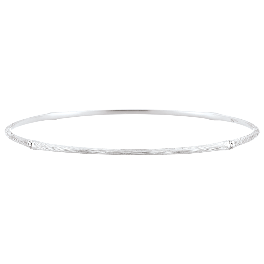 Een soepele en solide bamboetak geeft nu vorm aan een armband van geborsteld witgoud, met diamanten bezet, voor een eeuwigdurend band. De met de hand uitgevoerde matte afwerking geeft een natuurlijke uitstraling aan deze realistische uitvoering.
