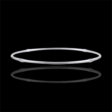 Een soepele en solide bamboetak geeft nu vorm aan een armband voor een eeuwigdurend band. Het witte goud van de bamboeknopen is bezet met diamanten.