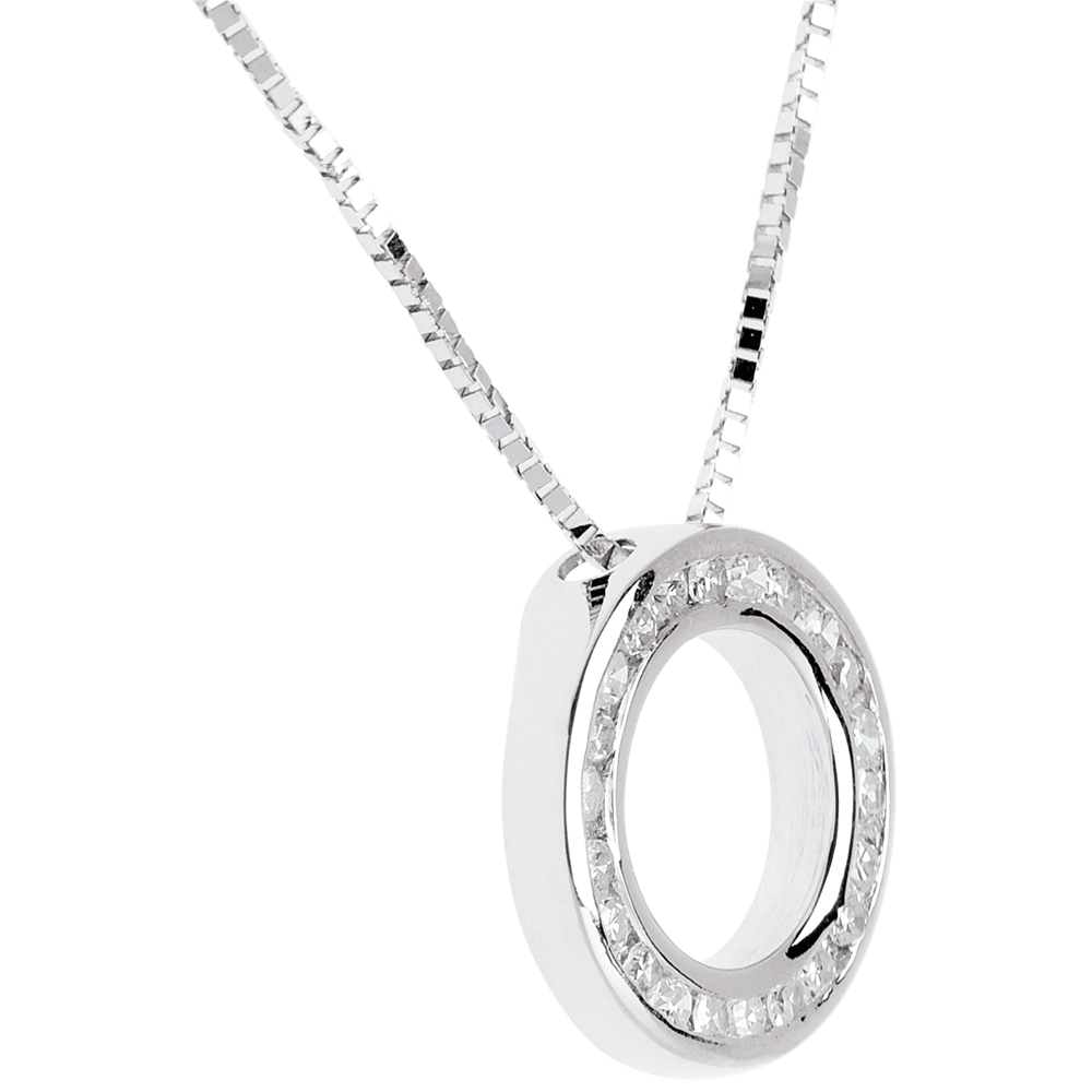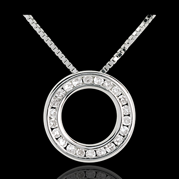 Een witgouden halsketting versterkt door een diamanten pavézetting voor een hemelse uitstraling.