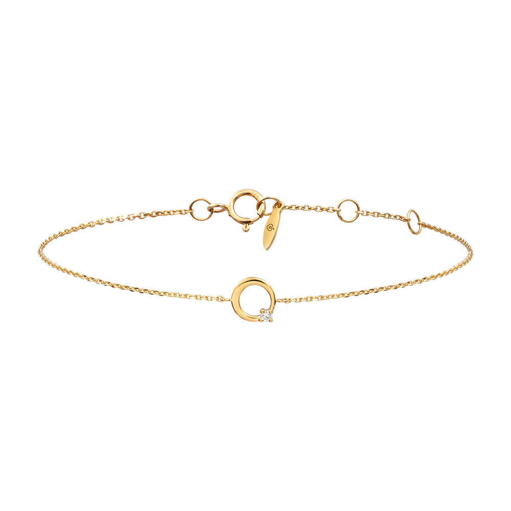 Een cirkel van geelgoud, verfraaid met een solitaire synthetische diamant, hangt aan een fijn kettinkje.Een minimalistische schittering, subtiel en elegant, direct op de huid gedragen.
