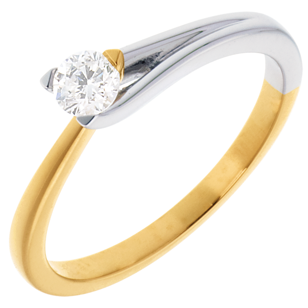 Solitaire Spintol - 18 karaat witgoud en geelgoud - 0.23 karaat