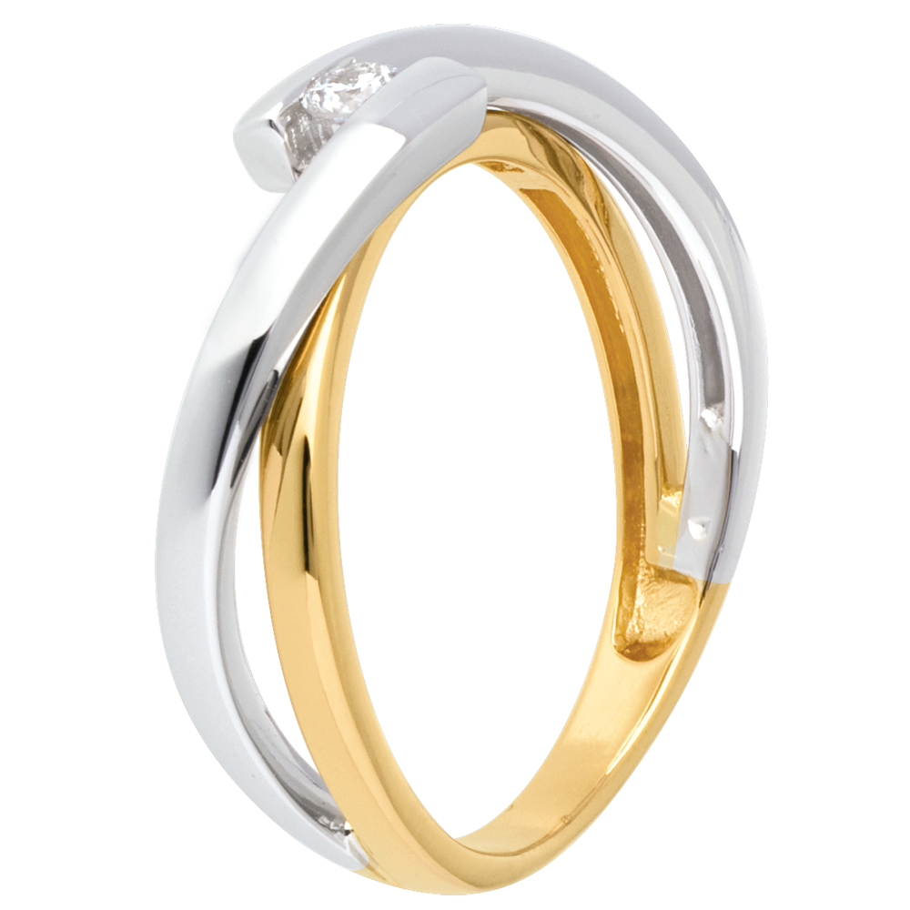 Ring Solitaire Liefdesnest - Mecano 18 karaat witgoud en geelgoud - 0.07 karaat - 18 karaat