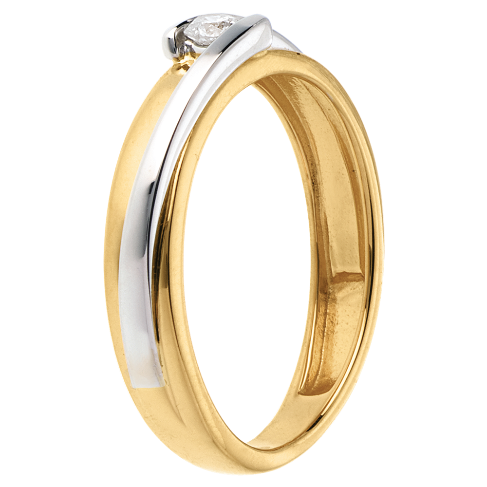1 diamant : 0.08 karaat - Wit en geel goud (18 karaat = 750/-): 3.1 g.