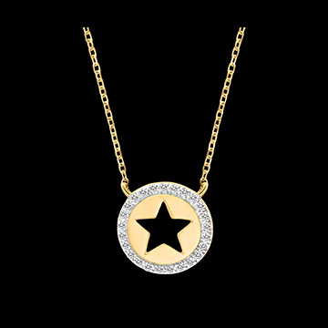 - Uitgesneden ster ontwerp in geelgoud omringd door diamanten