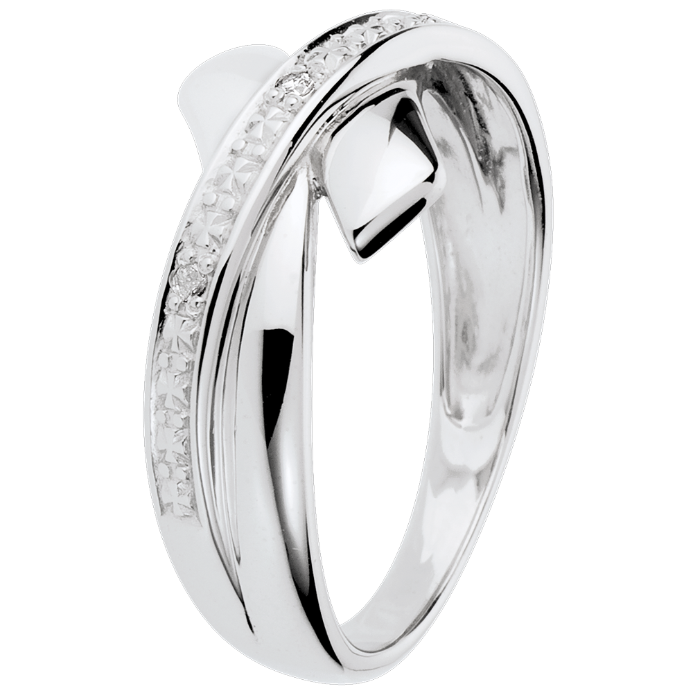 Een witgouden ring met diamant die doet denken aan een heilige tijd met magische momenten.