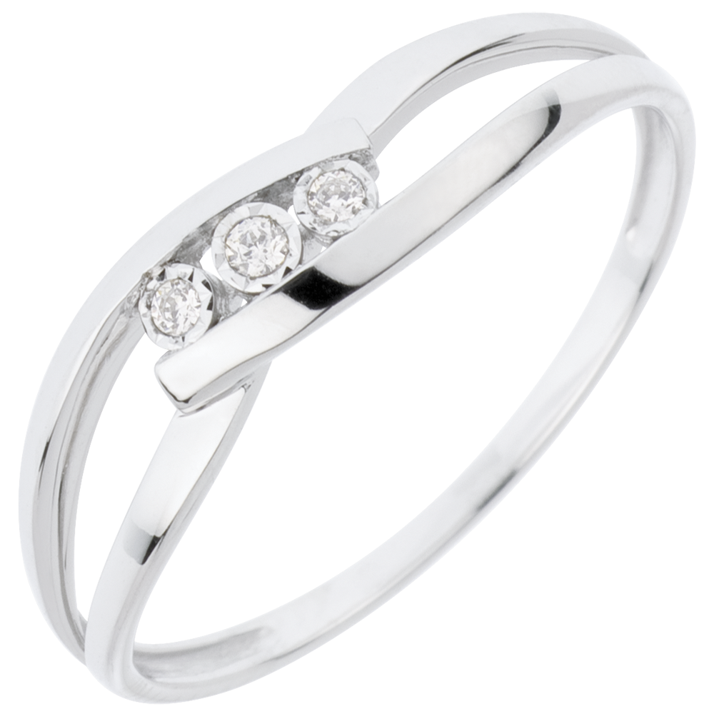 Trilogie ring Liefdesnest - Liefdeskus - 18 karaat witgoud