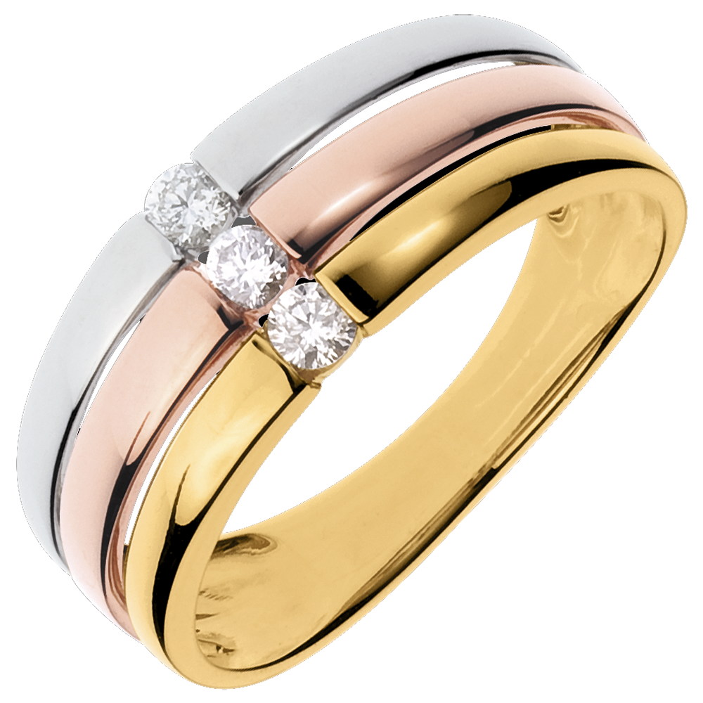 3 diamanten : 0.16 karaat - Drie goudkleuren (18 karaat = 750/-): 3.3 g.