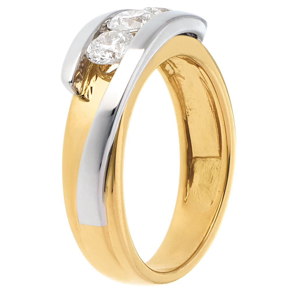 3 diamanten : 0.77 karaat - Wit en geel goud (18 karaat = 750/-): 6.6 g.