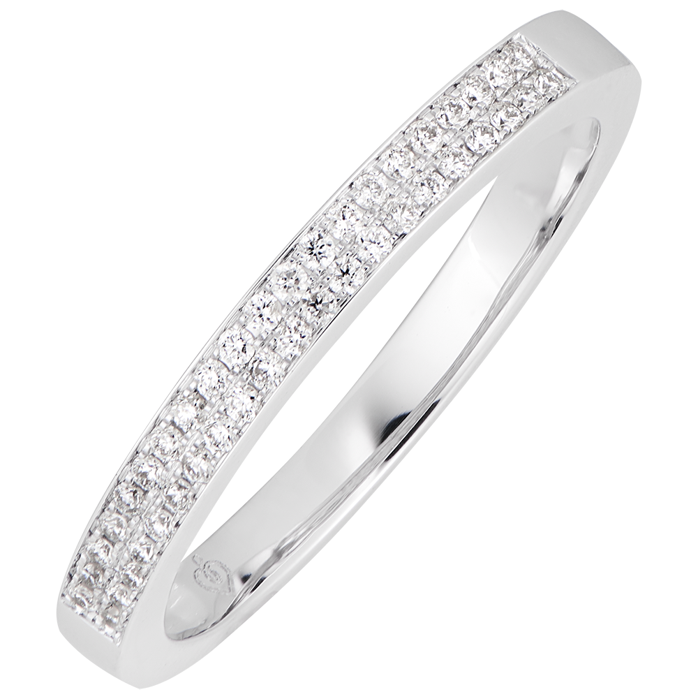 Een half bezette, dubbele trouwring, een onmisbare en tijdloze klassieker uit de juwelierskunst