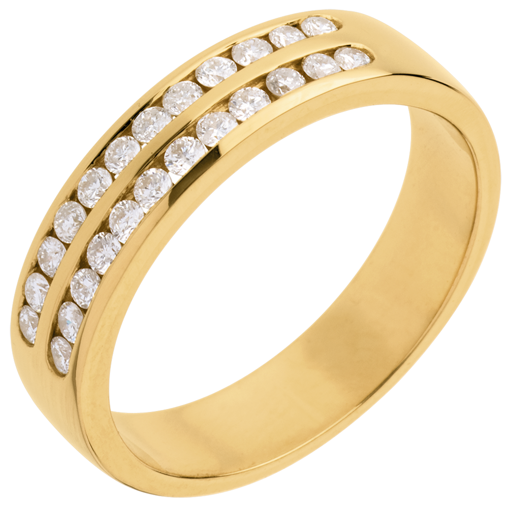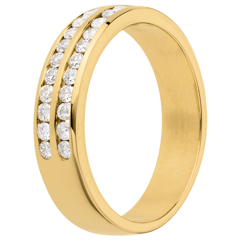 Trouwring 18 karaat geelgoud bezet - 2 lijnen rails - 0.36 karaat - 24 Diamanten