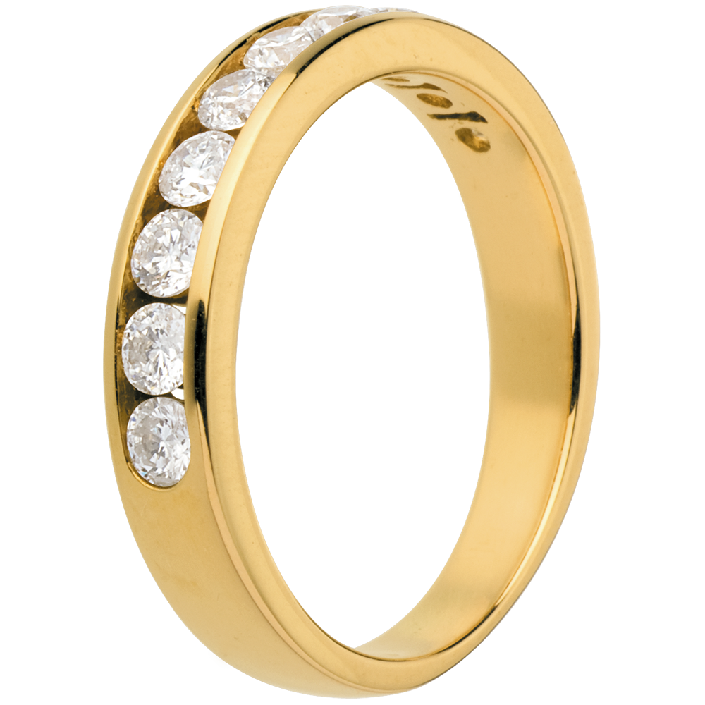 10 diamanten : 0.65 karaat - Geel goud (18 karaat = 750/-): 4 g.