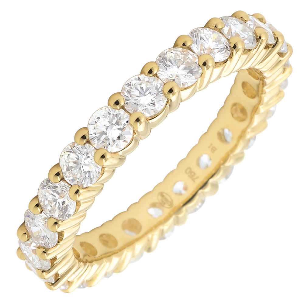 De perfecte balans tussen een geelgouden ring geplaveid met ronde diamanten voor een sterke symboliek. Een must juweeltje.