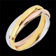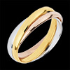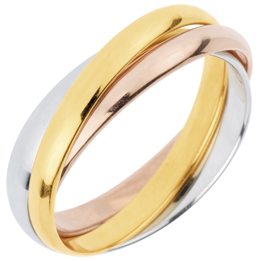 Een ring in geelgoud, een witgouden ring en een ring in roségoud zijn voor eeuwig verenigd.