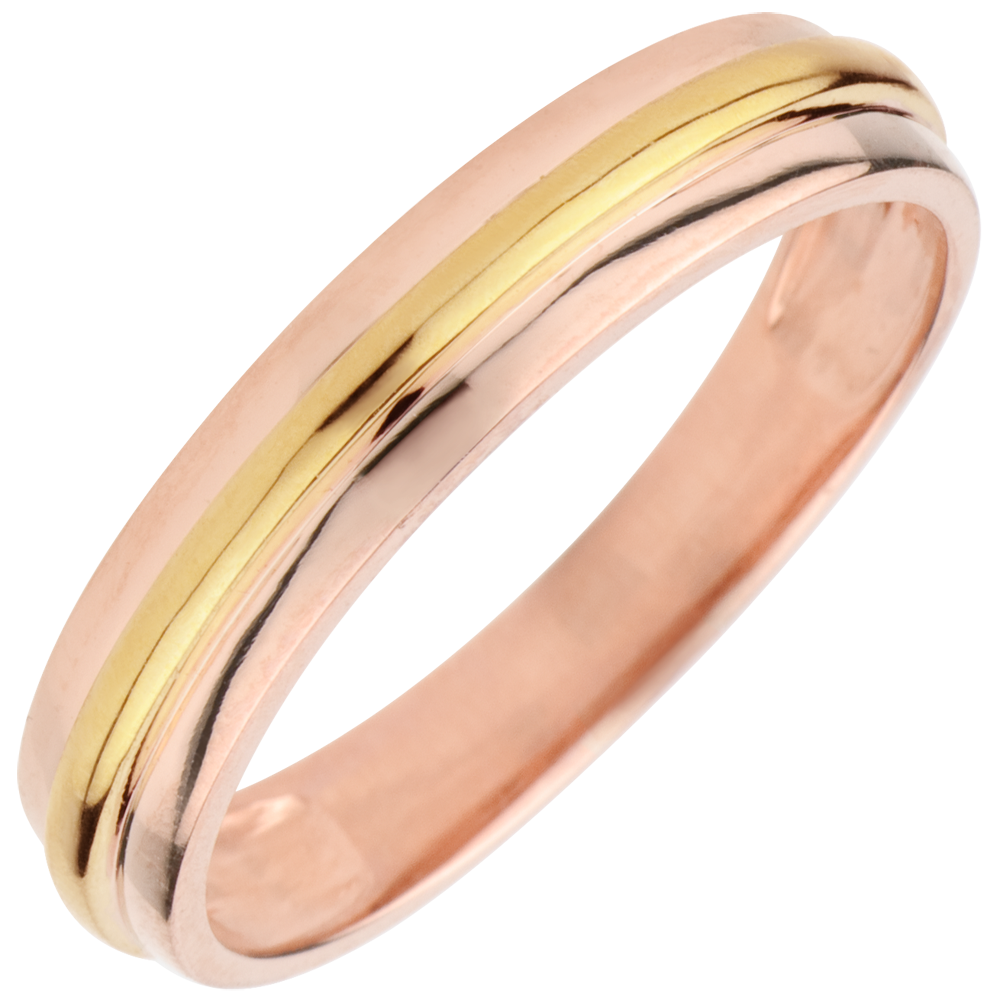 Een glanzende geelgouden ring op een trouwring met een witgouden lint. Een klassieker revisited, modern en elegant.…