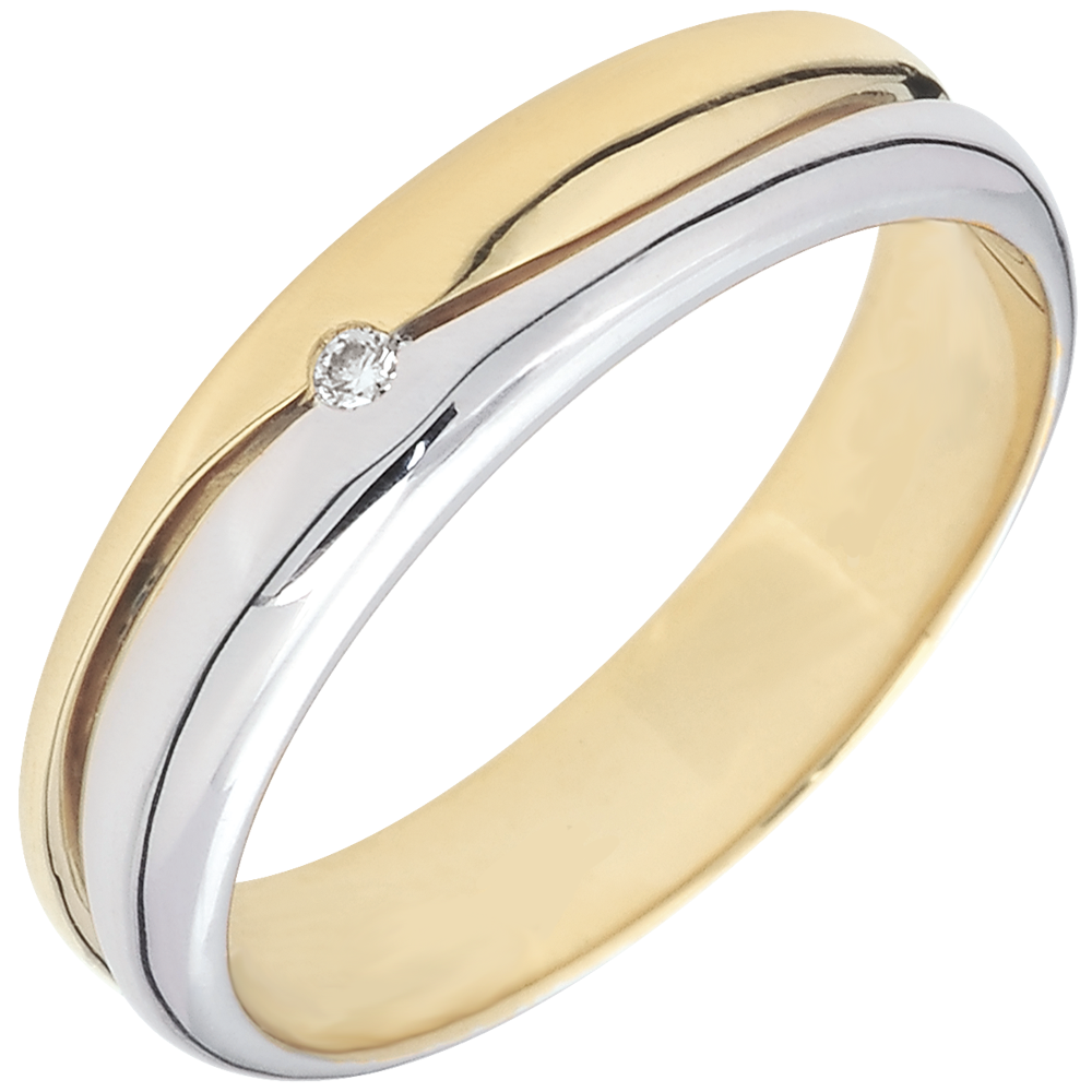 Trouwring Liefde voor Heren - 18 karaat witgoud en 18 karaat geelgoud - Diamant 0.022 karaat - 18 karaat