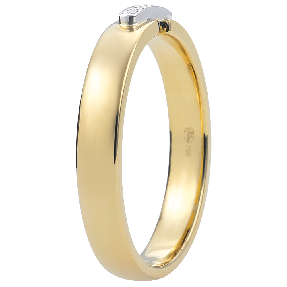 6 diamanten : 0.02 karaat - Geel goud (18 karaat = 750/-): 4 g.