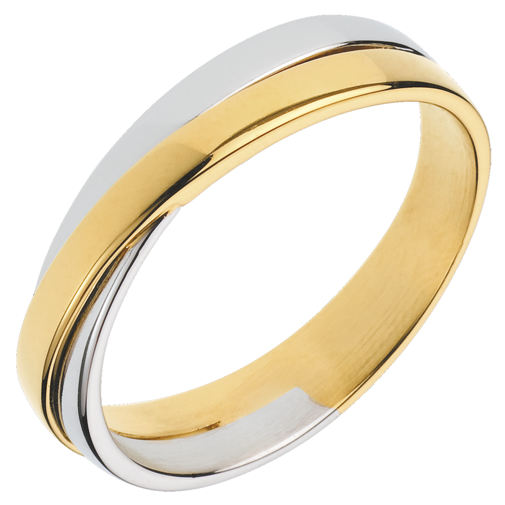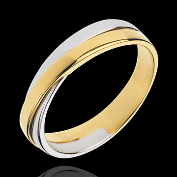 Trouwring Saturnus Duo - volledig goud - 18 karaat geelgoud en witgoud