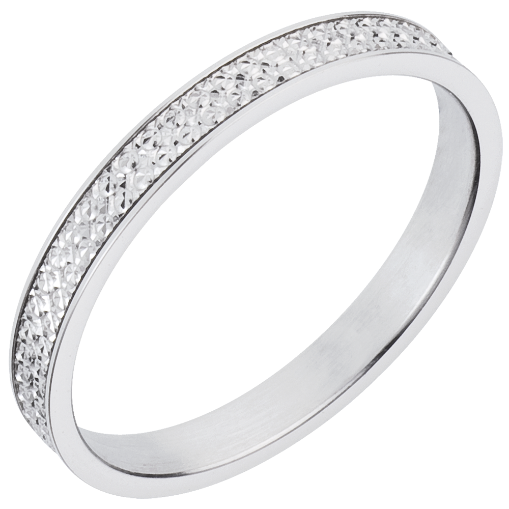 Een bewerkte witgouden ring voor een unieke en moderne stijl.
