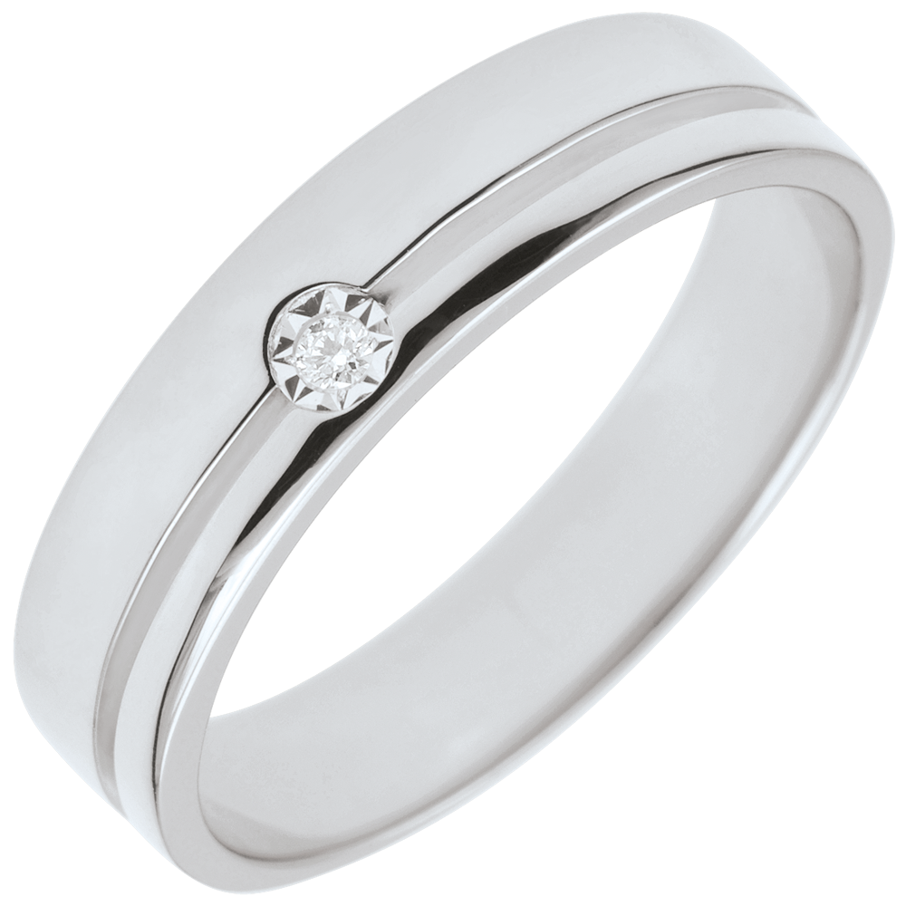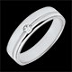 Deze trouwring met een modern design en horizontale lijn draagt in het midden een diamant.