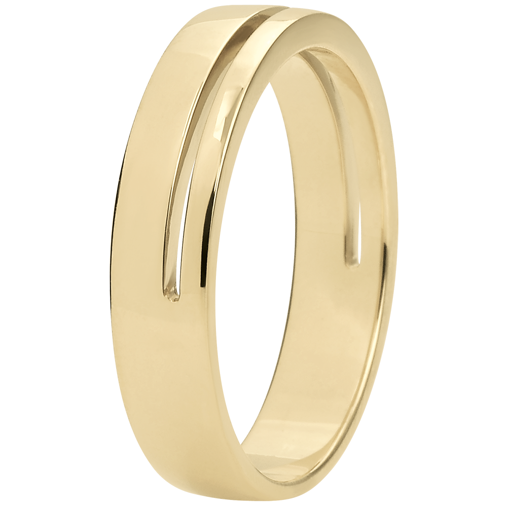 Deze trouwring biedt een modern design met een horizontale lijn.