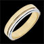 De ring is vervaardigd uit 9 karaat wit- en geelgoud, wat zorgt voor een modern bicolor effect.