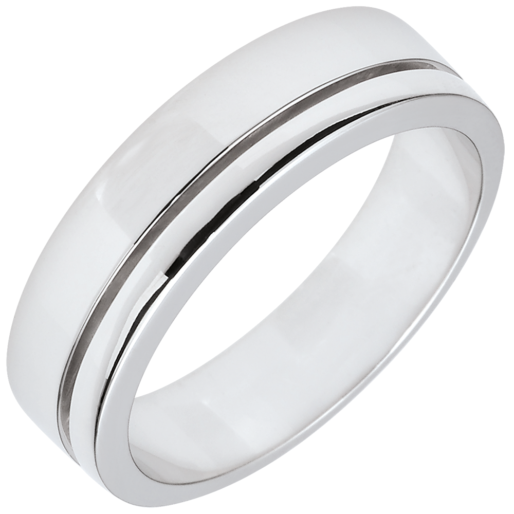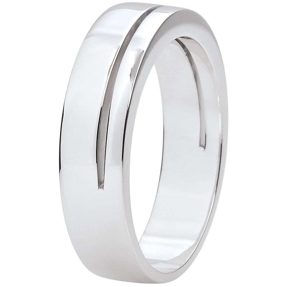 Deze trouwring biedt een modern design met een horizontale lijn.