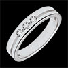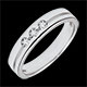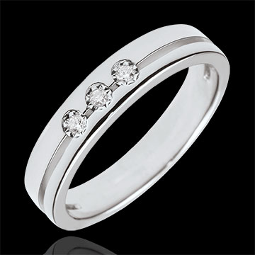 Deze trouwring met een modern design en horizontale lijn draagt in het midden drie diamanten.