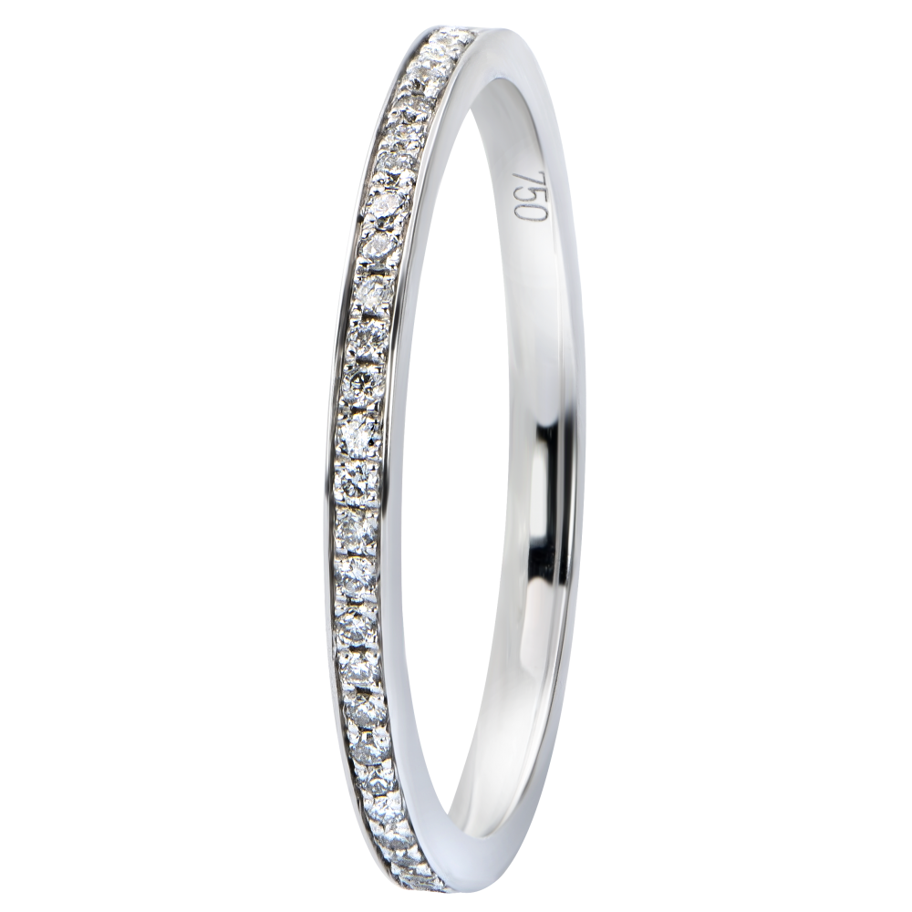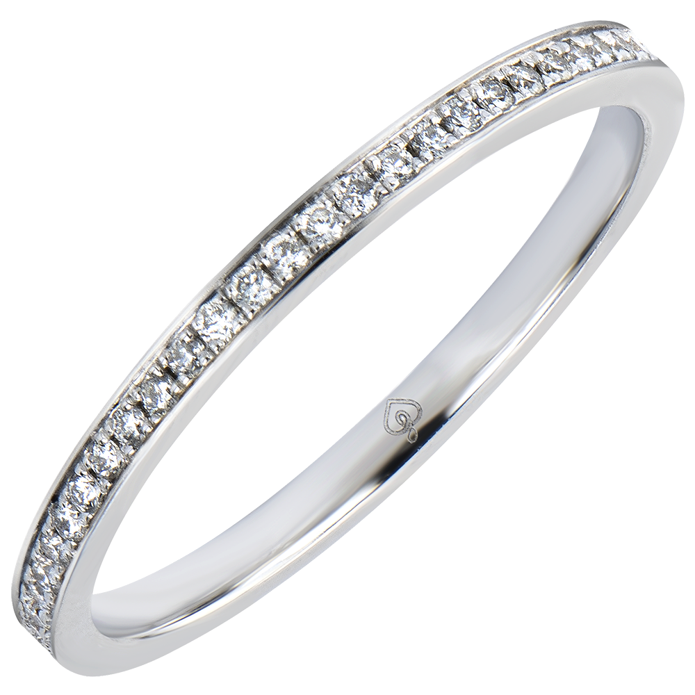 Een iconische trouwring ingelegd met diamanten, die uw verlovingsring perfect aanvult met een delicate schittering.