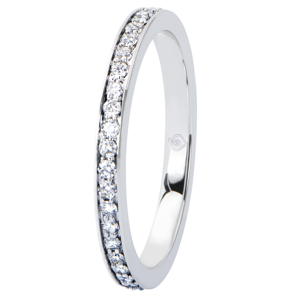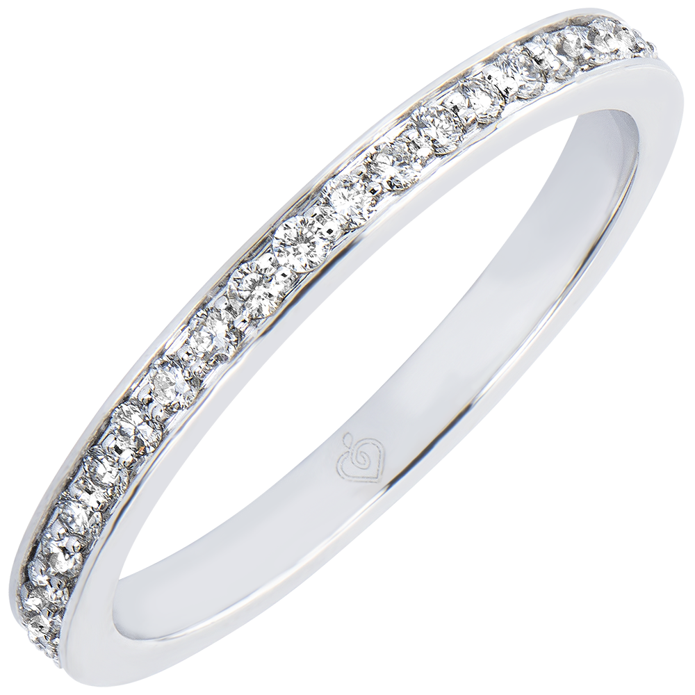Trouwring van witgoud, ingelegd met diamanten, voor een uniek juweel en een vleugje schittering, naar het beeld van de gevoelens.