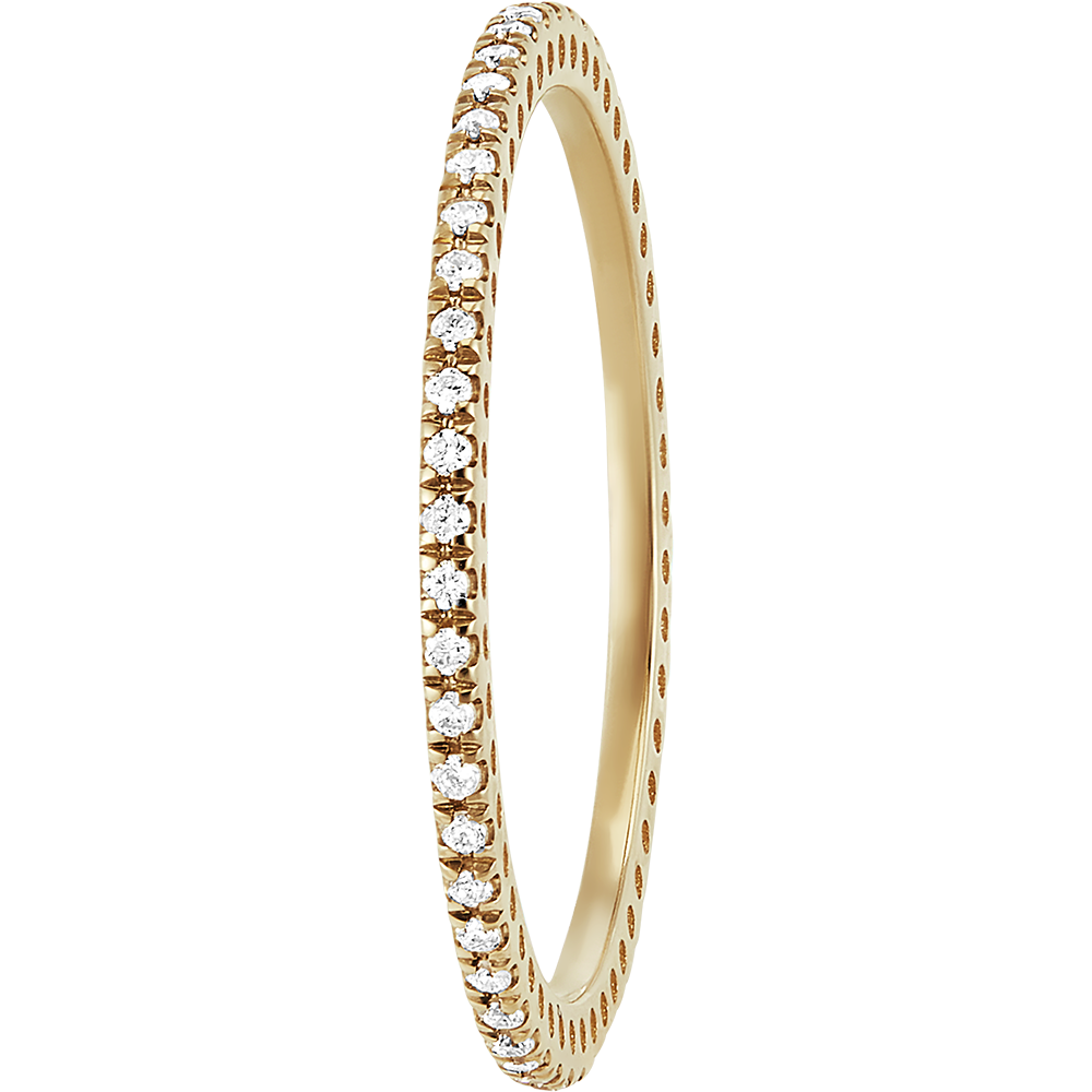 Een fijne en delicate geelgouden ring bezet met diamanten - helemaal rondom. Deze trouwring is perfect om te combineren met een verlovingsring of om alleen te dragen.