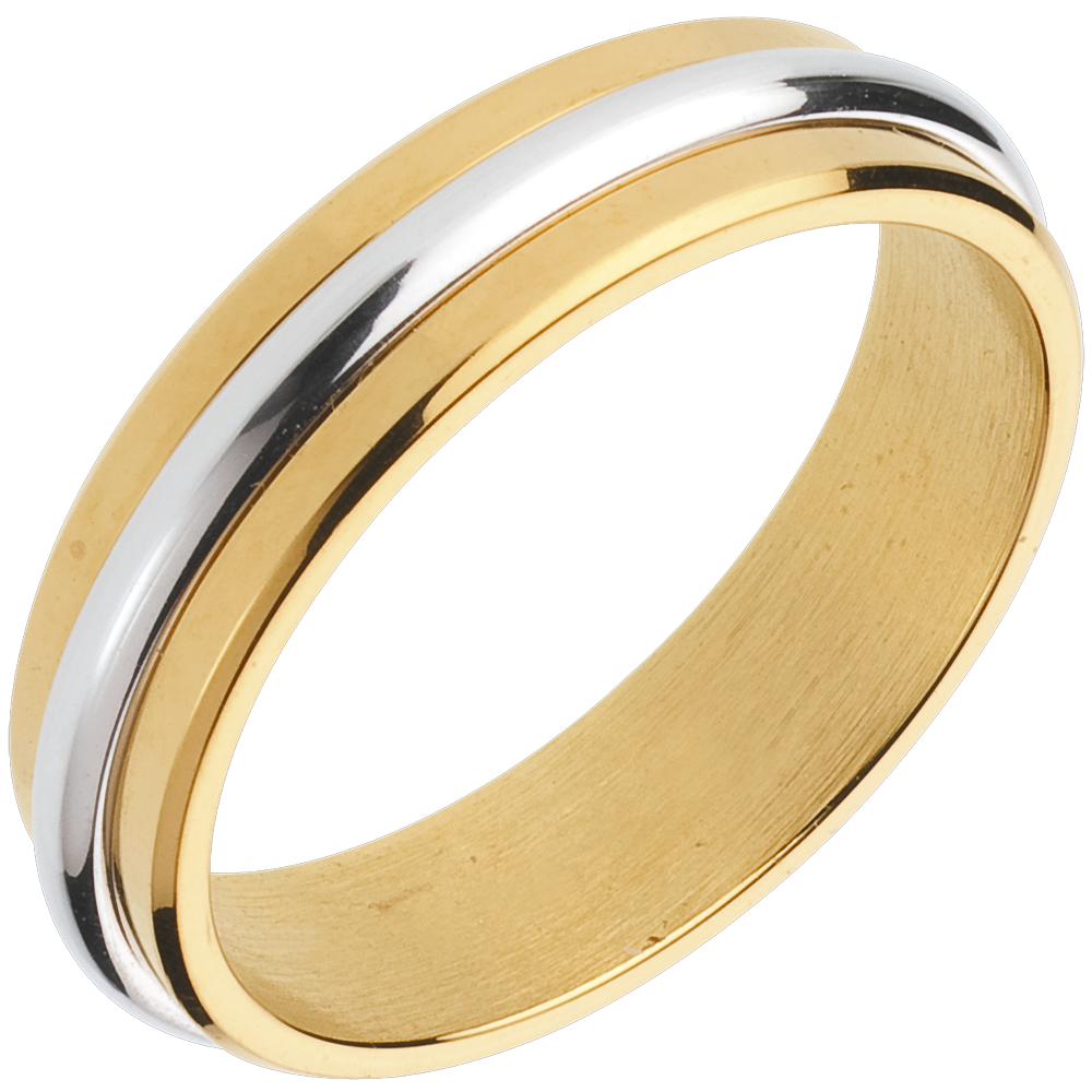 Een gouden ring wordt vastgeklemd in de taille met een witgouden ring voor een eindeloze knuffel.