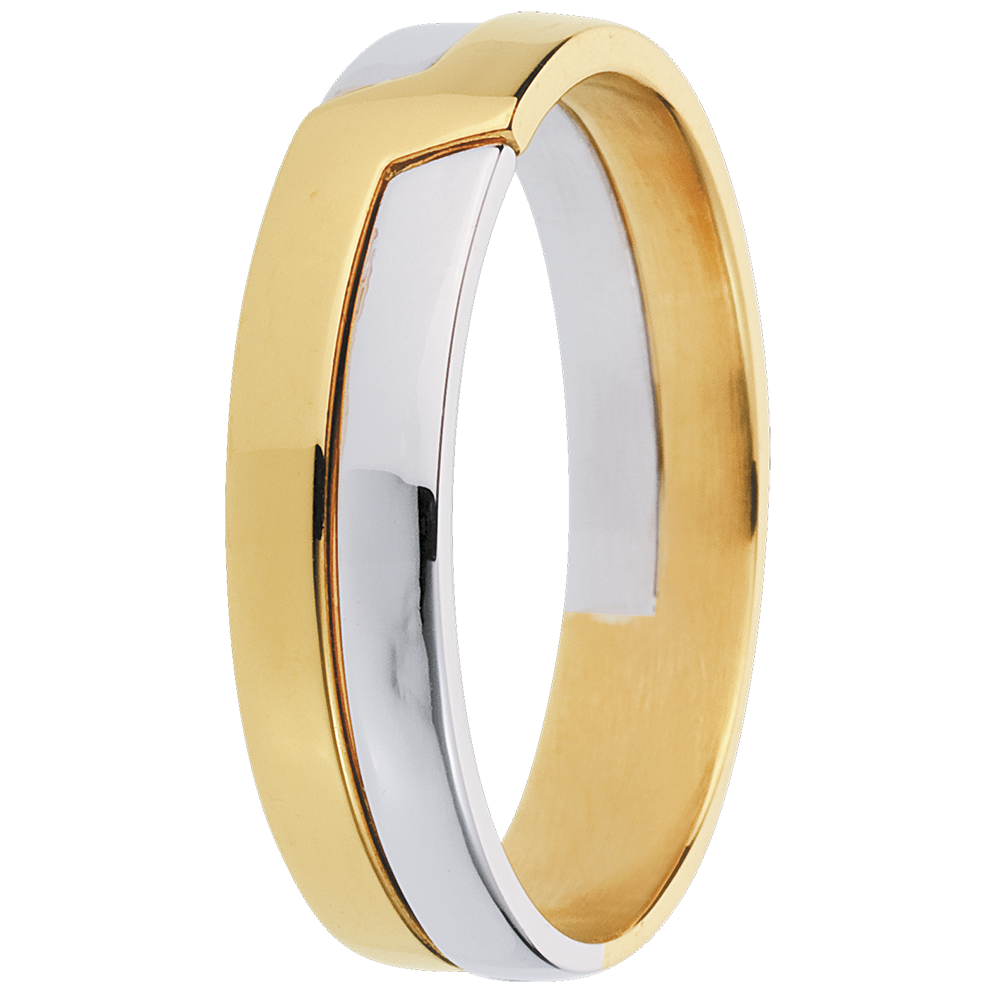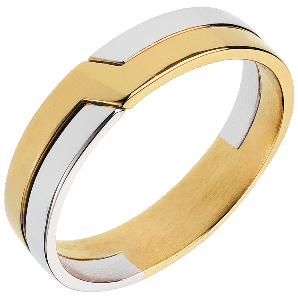 Een ring bewerkt in geel en witgoud voor een sterke symbolische waarde.