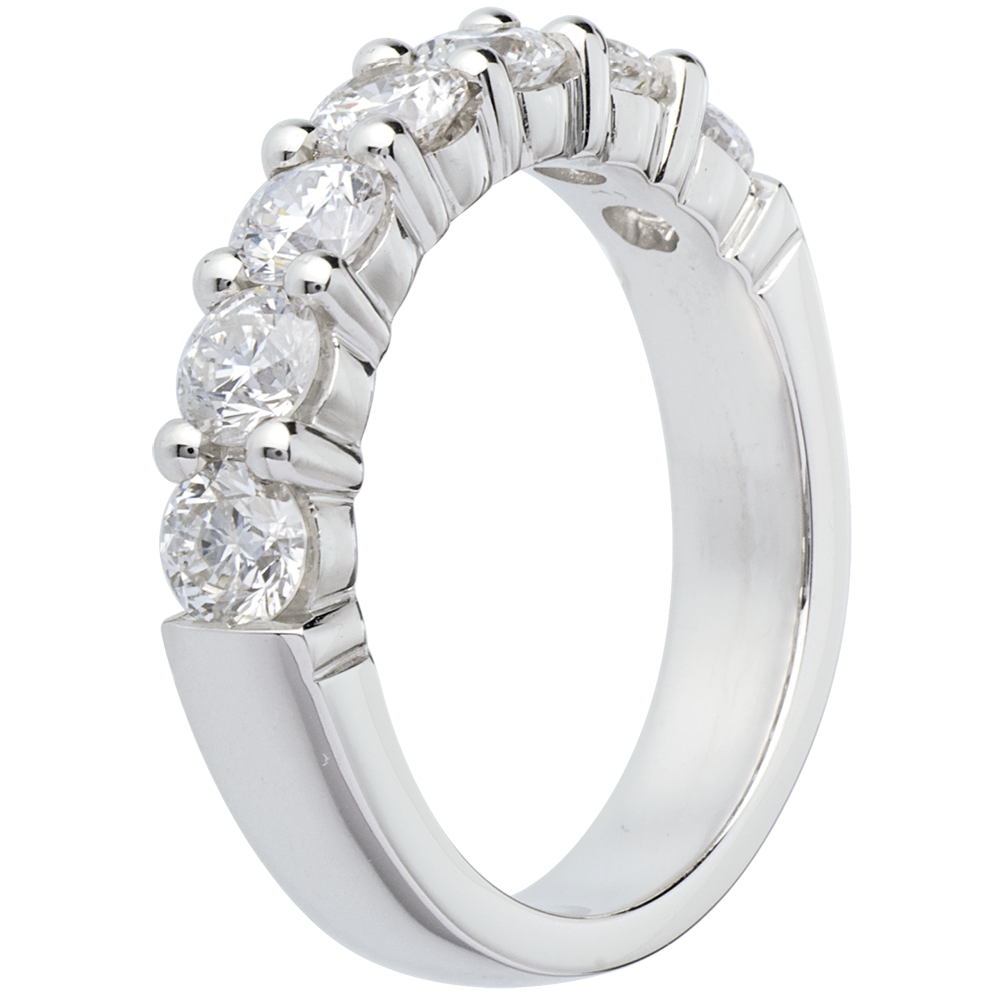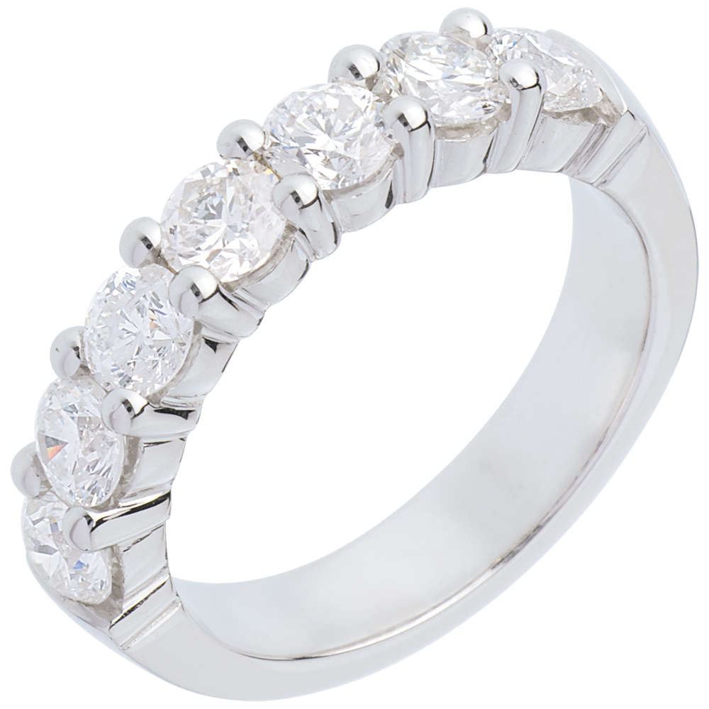 Een witgouden ring met 7 gekroonde diamanten.