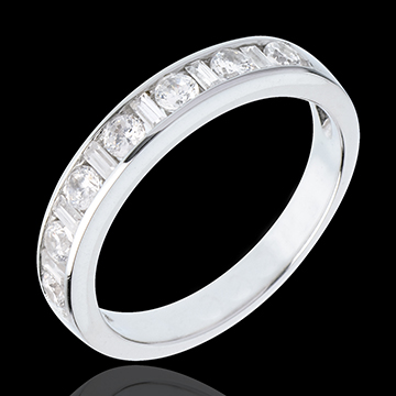 De perfecte balans van een ring en glimmende diamanten rails. Een must juweeltje.