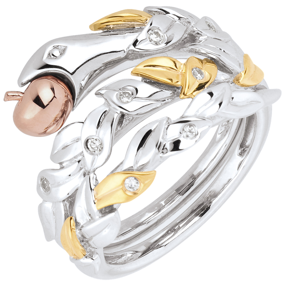9 diamanten : 0.08 karaat - Drie goudkleuren (18 karaat = 750/-): 9.2 g.