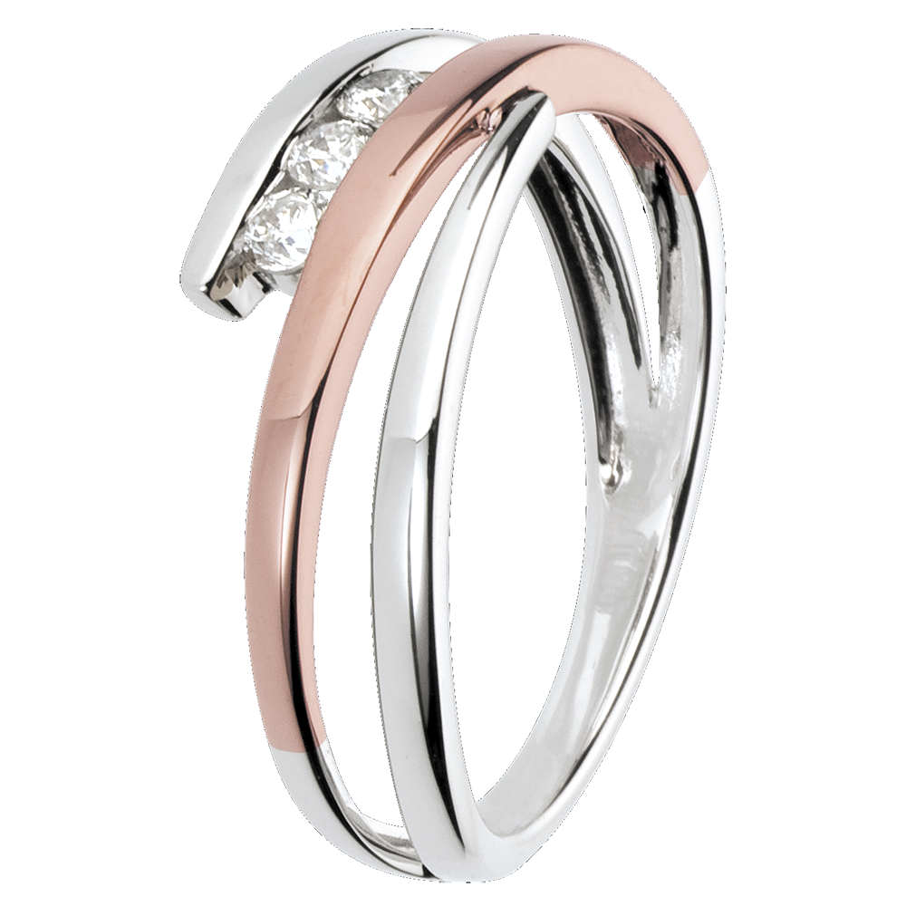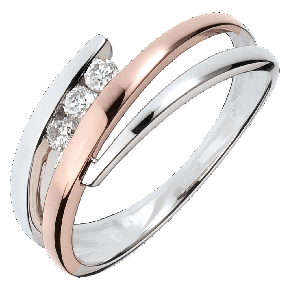 VerlovingsRing Solitaire Liefdesnest - Trio Diamanten 18 karaat roségoud witgoud - 3 Diamanten