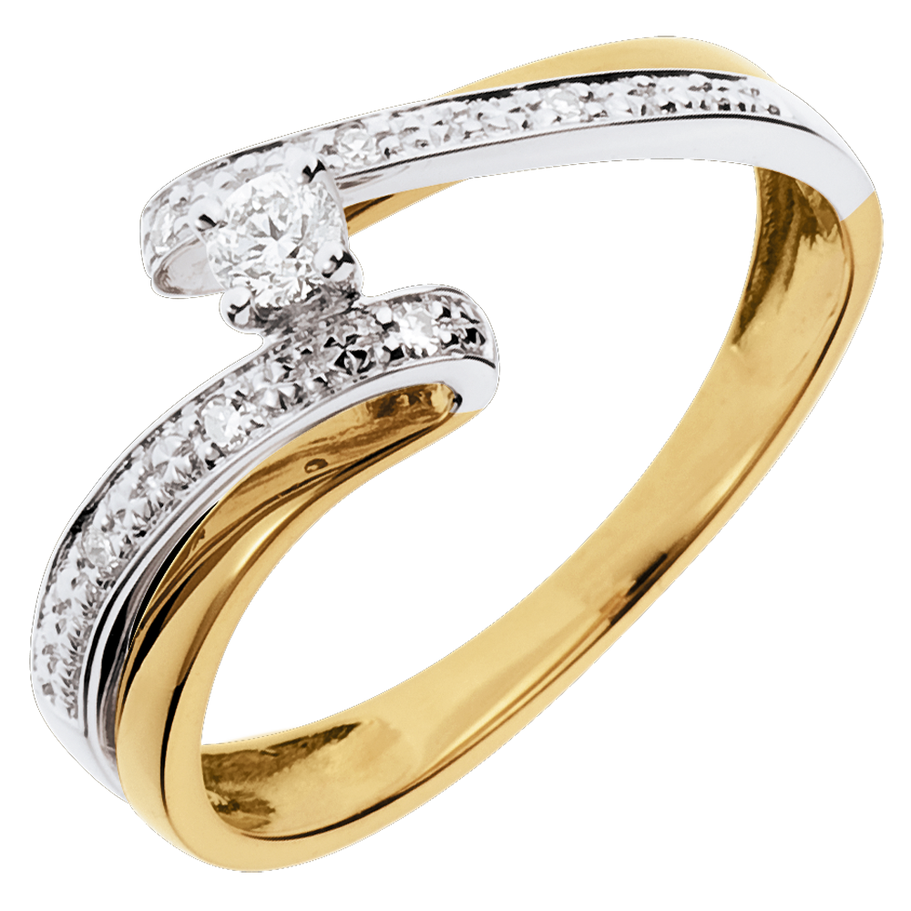 Verlovingsring Liefdesnest - Zonnenstelsel - 18 karaat witgoud en geelgoud - 0.08 karaat Diamant