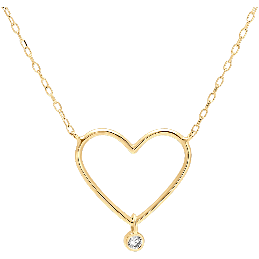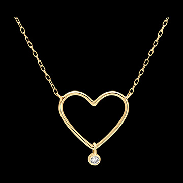 Een geelgouden halsketting versierd met een hartmotief bezet met een bewegende diamant, voor een model vol verfijning en lichtheid.